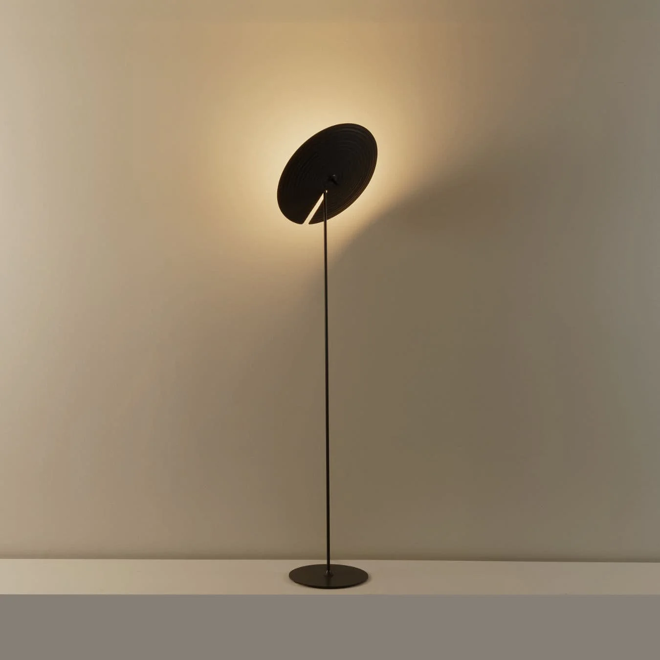 Alike to a small orchestra, this series transports you into a recital of percussion and diffuse light. Rotating the shade directs the light to dilute it or envelop the atmosphere. The glass lampshade’s magnetization system generates a magnetic field that enables the screen to rotate around it, articulating the ball joint on the axis. The collection is made up of three different versions: upright, wall light, and table lamp, and is available in three different colours that make it easily adaptable to any contract or living space.